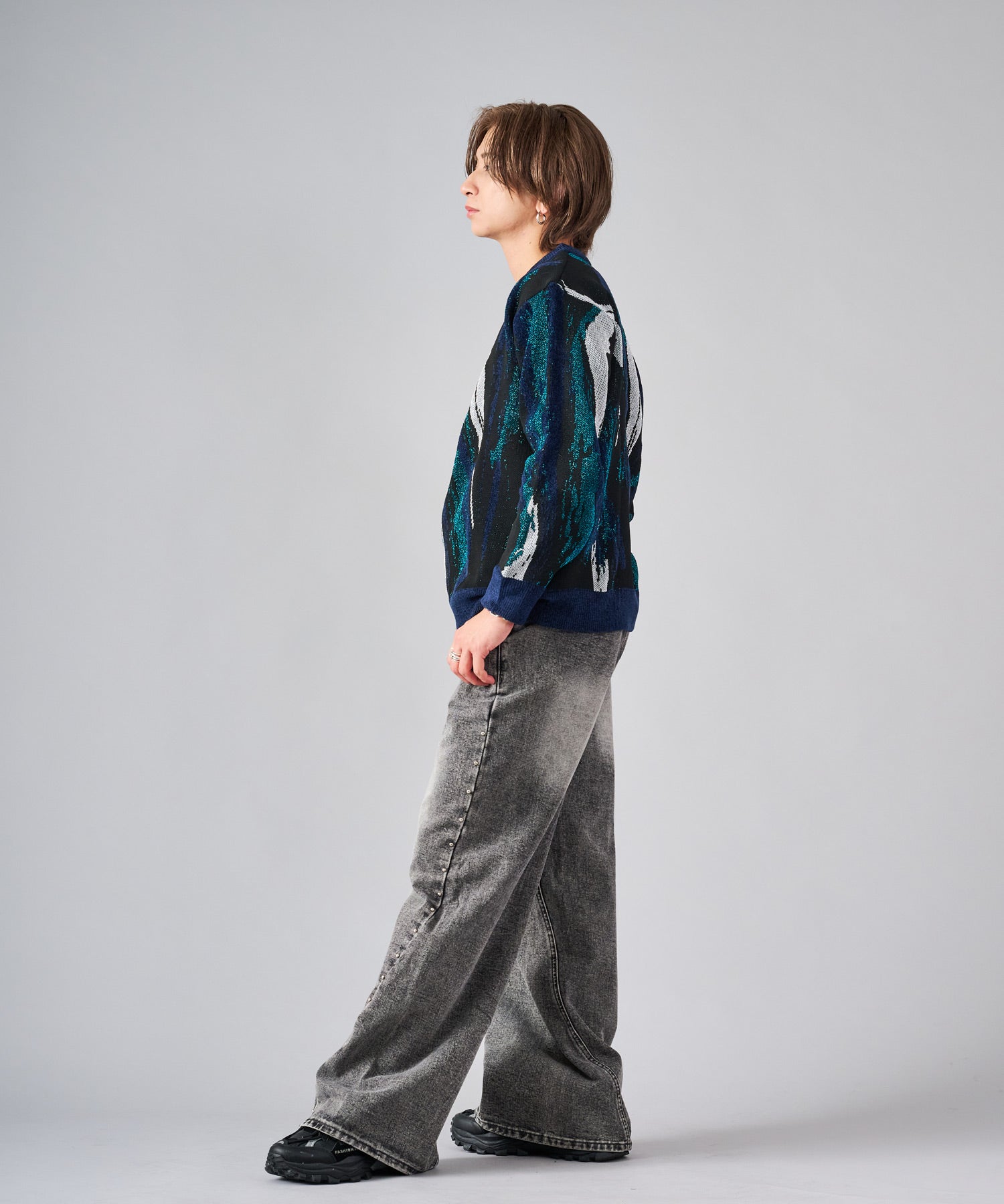 スタッズワイドバギーデニムパンツ