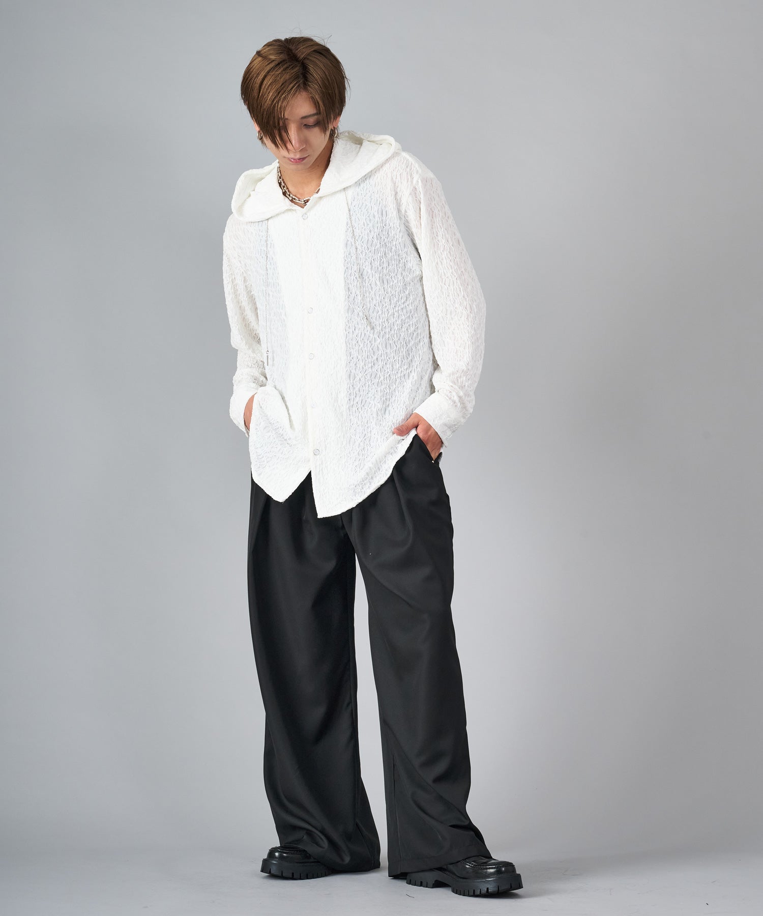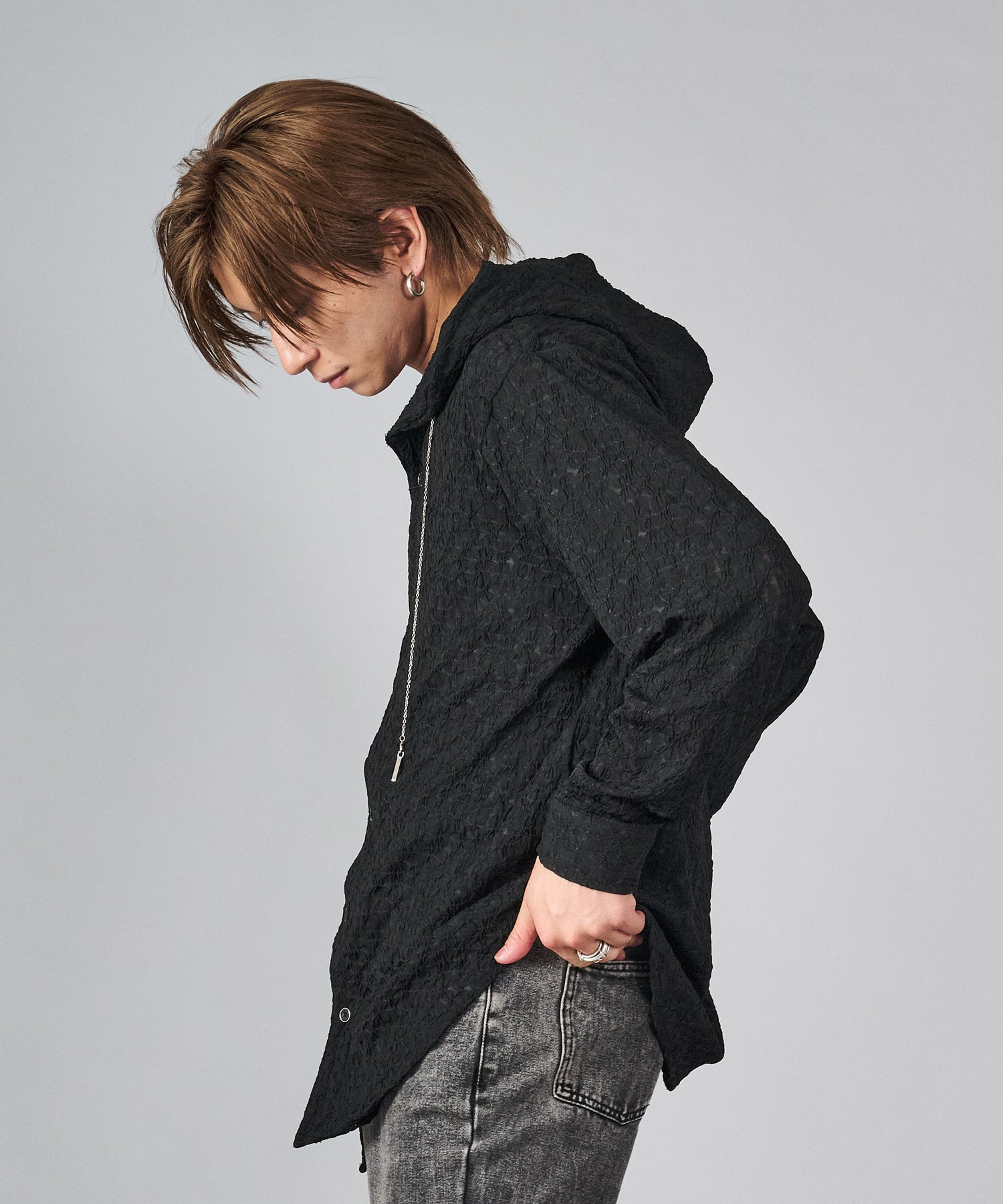 緩さと上品さがクールなシャツパーカー